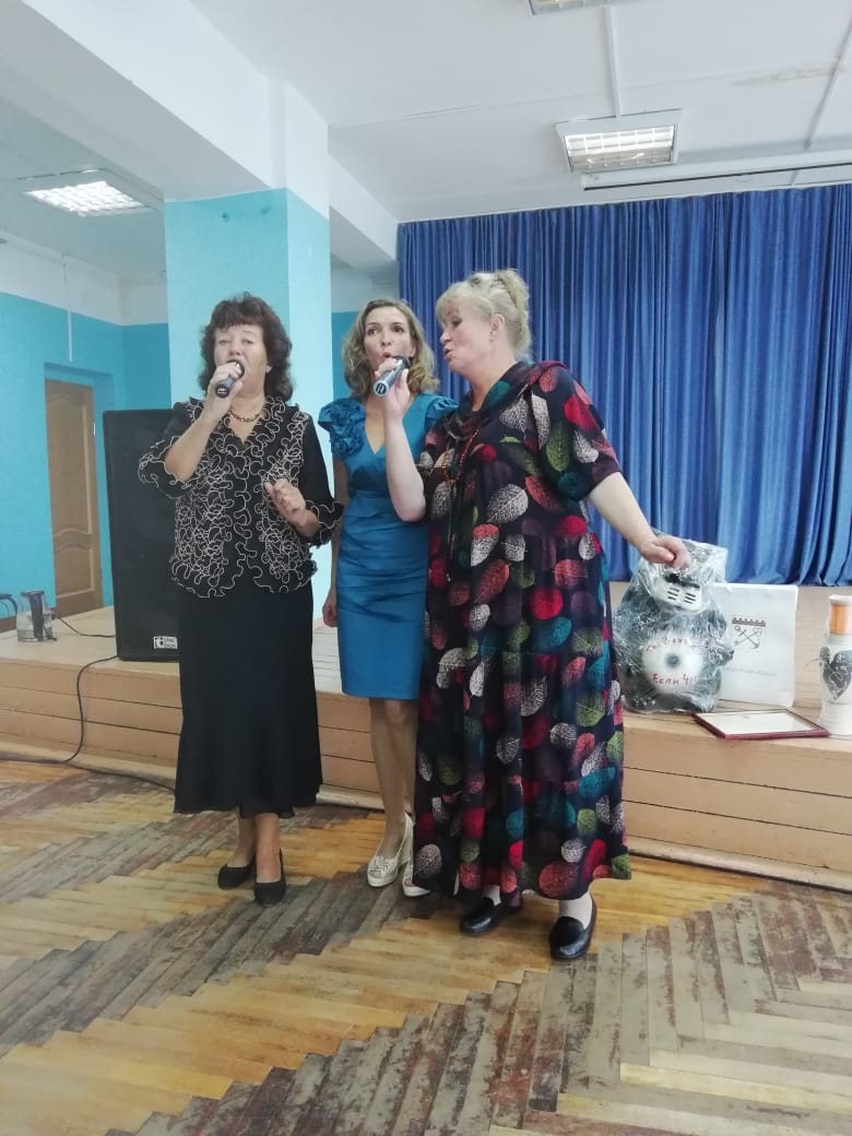 Участницы трио «Иволга» Татьяна Пыженко и  Ирина Макарова подготовили творческий подарок - юмористическую мизансцену. В этот вечер не умолкали песни под баян, праздник прошел в очень доброй и уютной обстановке.