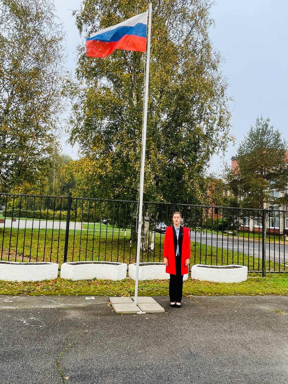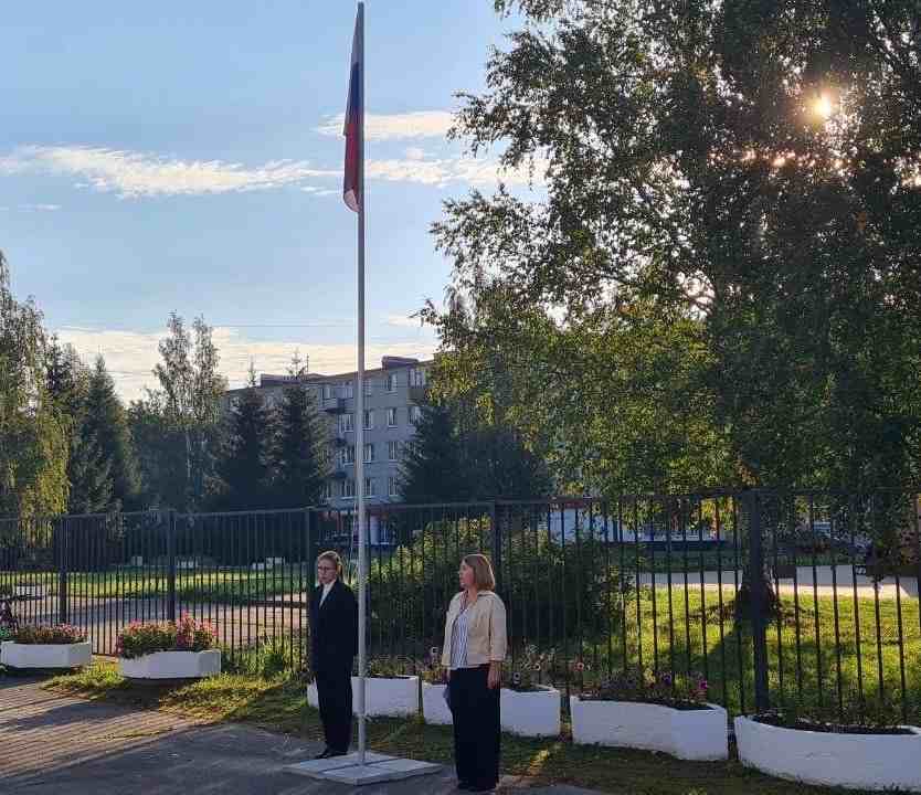 Право поднять государственный флаг Российской Федерации было предоставлено Латышевой Злате, ученице 8 класса, отличнице, активной участнице в общественной жизни школы. Директор школы Сергеева С.В. проинформировала о событиях прошлой недели и осветила план на следующую.
