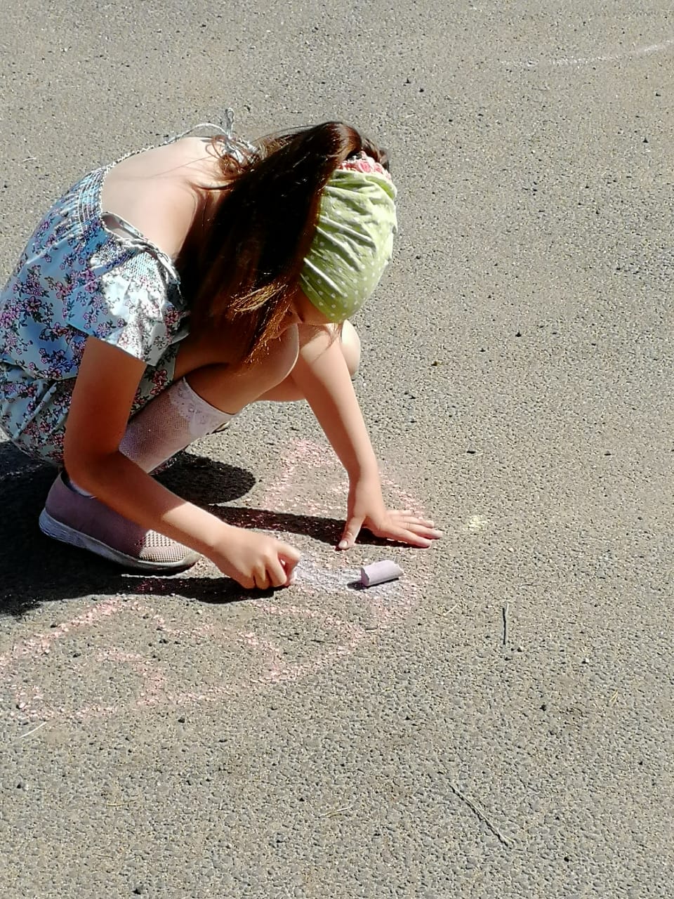 В начале мероприятия дети поделились своими впечатлениями о летнем отдыхе, отгадывали загадки о природе, о лете, затем участникам нужно было нарисовать лето. Рисовать цветными мелками, да еще не на бумаге, а на асфальте – это счастье для наших маленьких художников. Асфальт расцветал красками: желтое солнце , на лугу расцветал ковер из разноцветных цветов, бабочек. Дети очень старались, аккуратно раскрашивая свои рисунки.