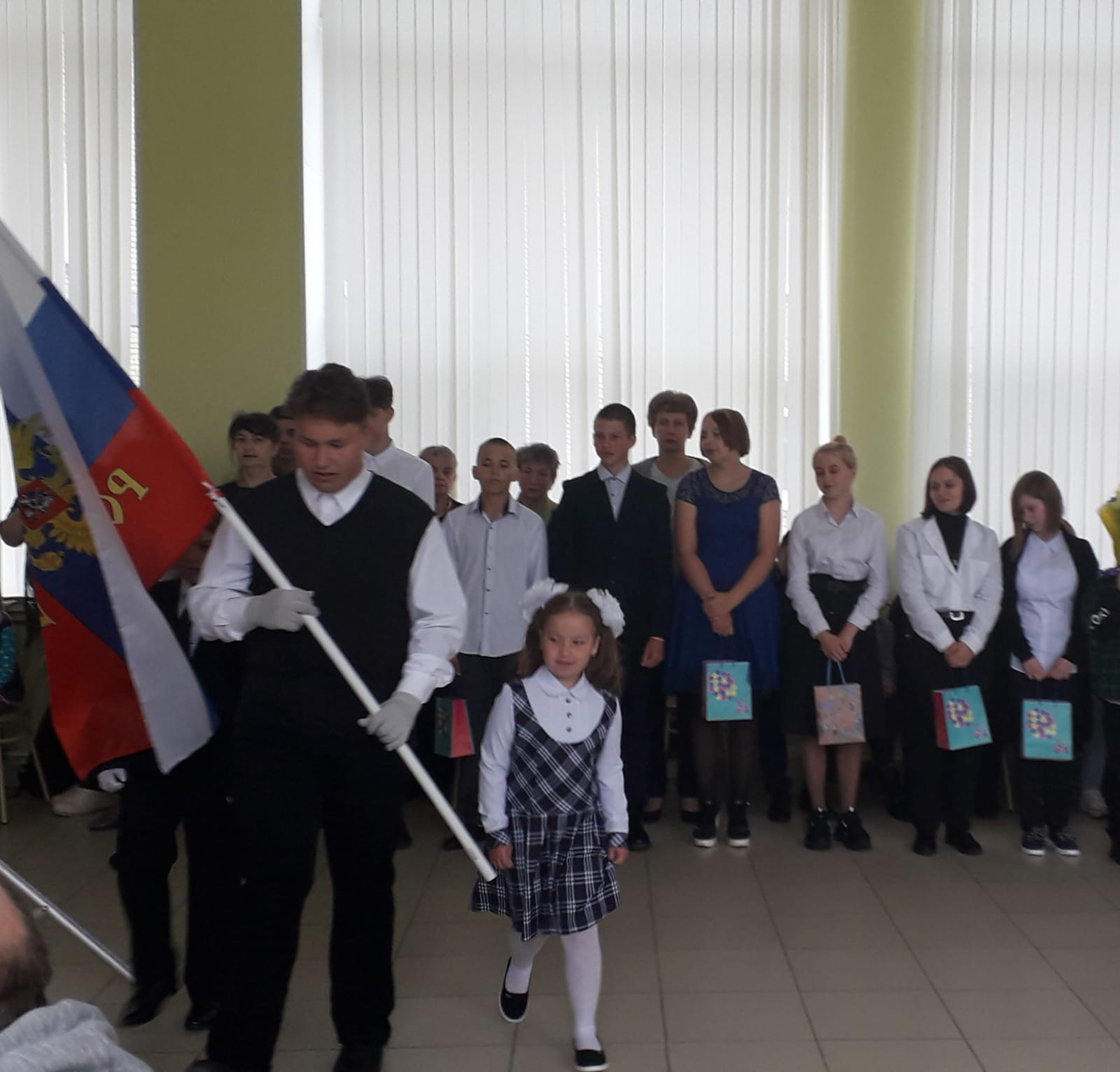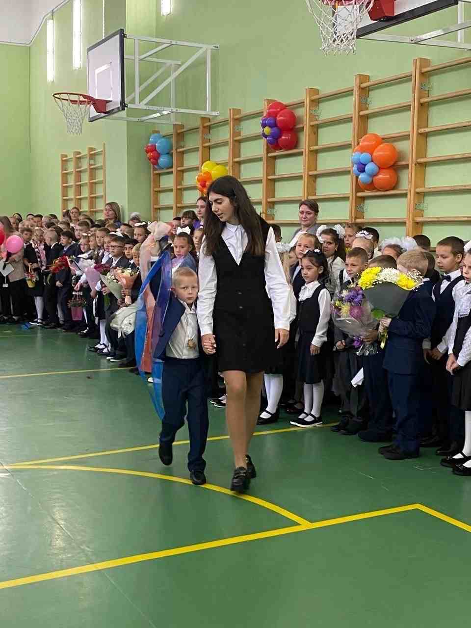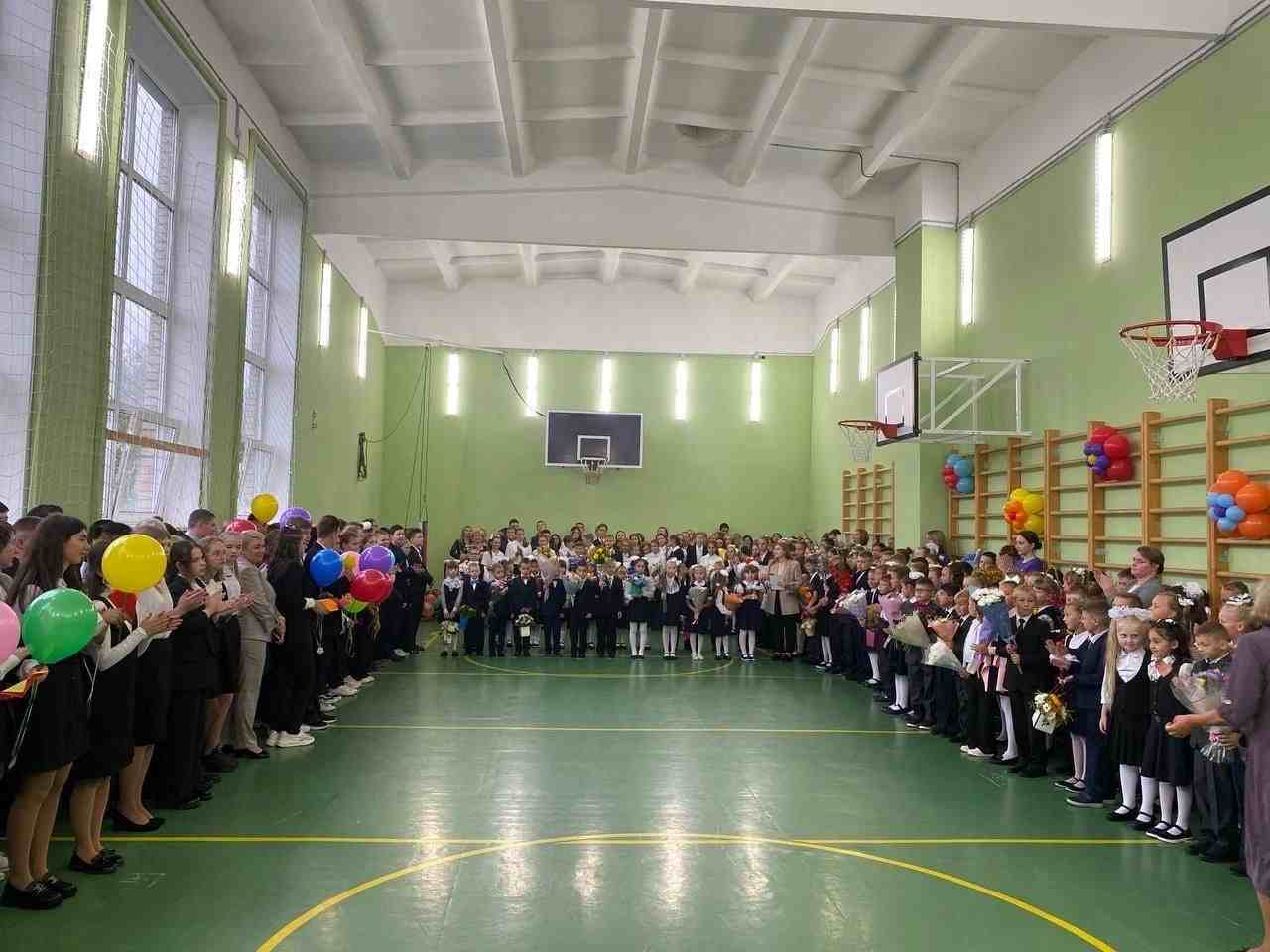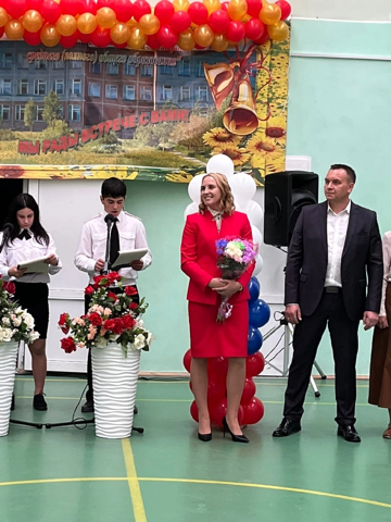 На торжественной линейке школа распахнула свои двери для первоклассников, ребята прочитали стихотворения, а девятые классы подарили им подарки и сказали напутственные слова. Добрые слова сказала исполняющая обязанности директора школы Бордовская Ольга Викторовна. Первый звонок в новом учебном году дает лучший учащийся прошлого года, ученик 9 класса Павлюченков Иван и ученица 1 класса Афанасенко Мария.