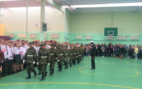 Традиционно на праздничной линейке приветствовали общеобразовательный кадетский 5 класс.