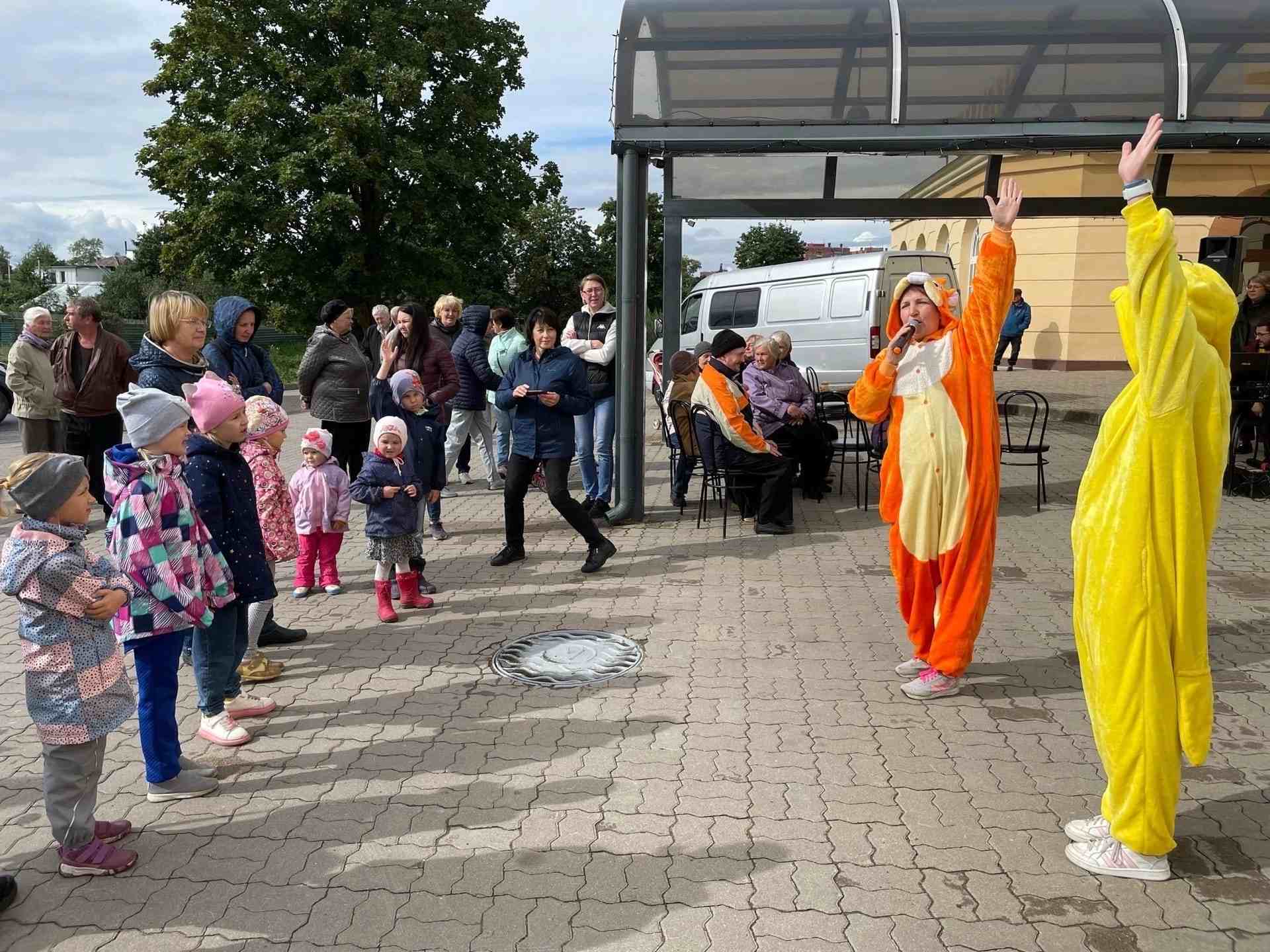 3 сентября прошла игровая программа для детей г. Тосно. На этот раз она называлась «Вместе весело шагать». Мальчишек и девчонок встречали аниматоры Ушакинского центра досуга и народного творчества Бурундучок (Е. Малимонова) и Цыпленок (В. Матвеева). Мероприятие украшали задорные, ритмичные мелодии, которые звучали на протяжении всей встречи. Царила атмосфера веселья, смеха, озорства, улыбок и хорошего настроения.